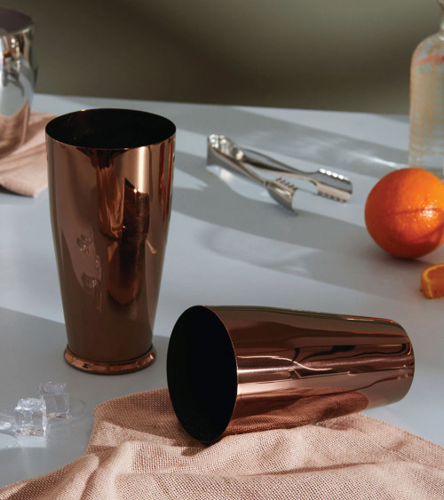 The 5050 Cocktail Shaker CU by Alessi is a refined evolution of Ettore Sottsass's iconic design, now enhanced with an elegant copper coating. This piece not only honors the designer's postmodern aesthetic but also introduces a visual warmth that elevates any environment. With a sculptural shape and carefully considered proportions, the 5050 CU offers an ergonomic and enjoyable experience when preparing cocktails. Beyond its functionality, it presents itself as a timeless design object, ideal for those looking to blend art, tradition, and sophistication in their personal space.