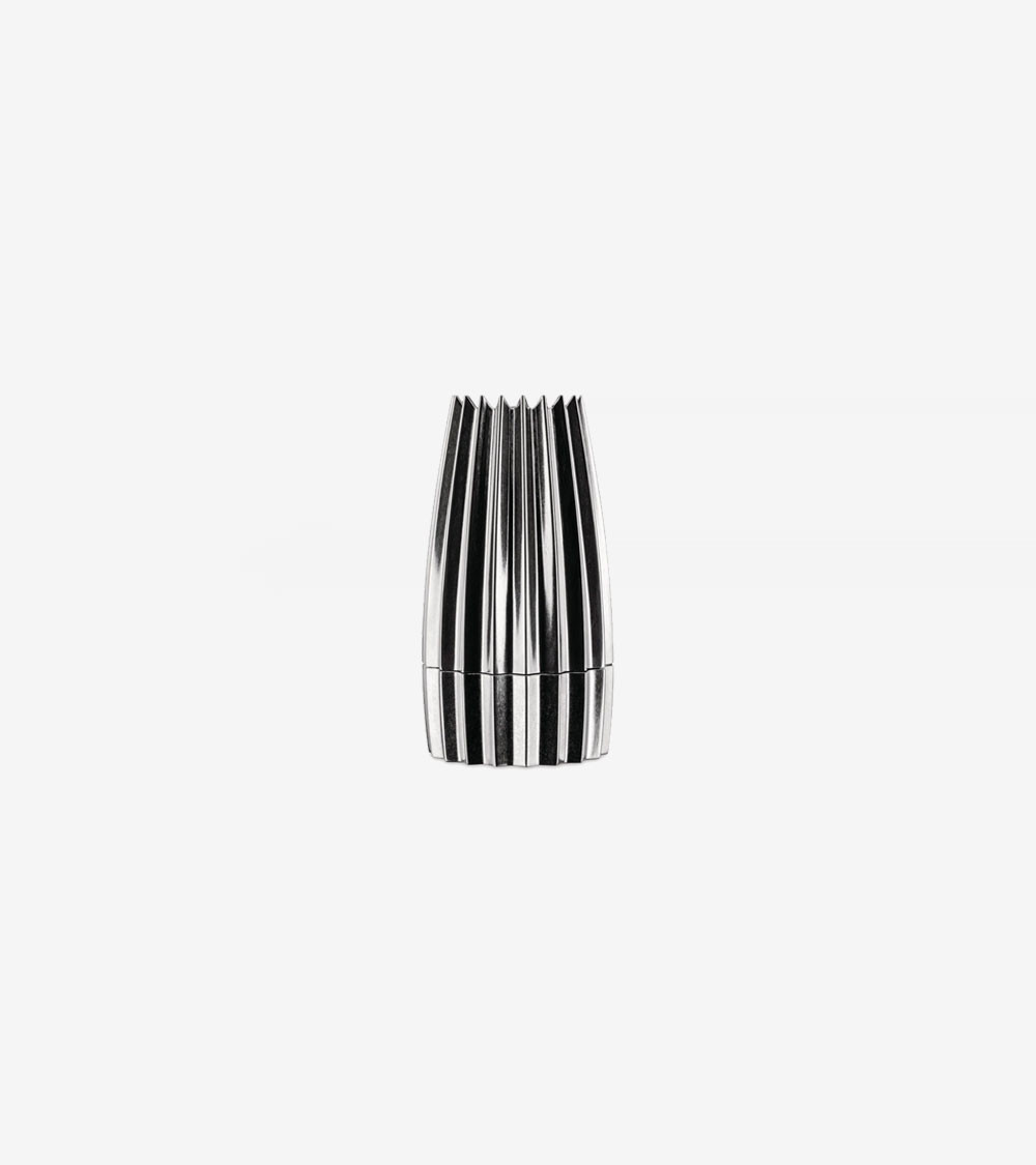 The Grind Pepper Mill by Alessi, designed by Federico Grazzini and Will Alsop, is both a functional and sculptural piece, made from polished aluminum. Featuring an organic design and an efficient ceramic mechanism, it blends art, ergonomics, and technology, transforming a daily object into an aesthetic experience.