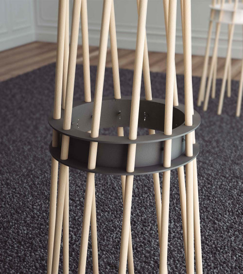 - Material: Ring made of 5mm steel sheet with 12 beech wood bars.