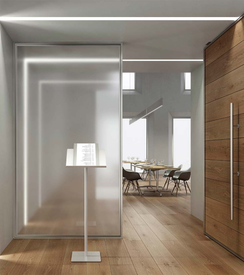 The Atria Lectern by Systemtronic stands out for its clean and functional design, conceived to integrate seamlessly into all kinds of contemporary environments. Its soft geometry and slender structure make it a versatile piece, perfect for offices, reception areas, meeting rooms, or residential spaces.