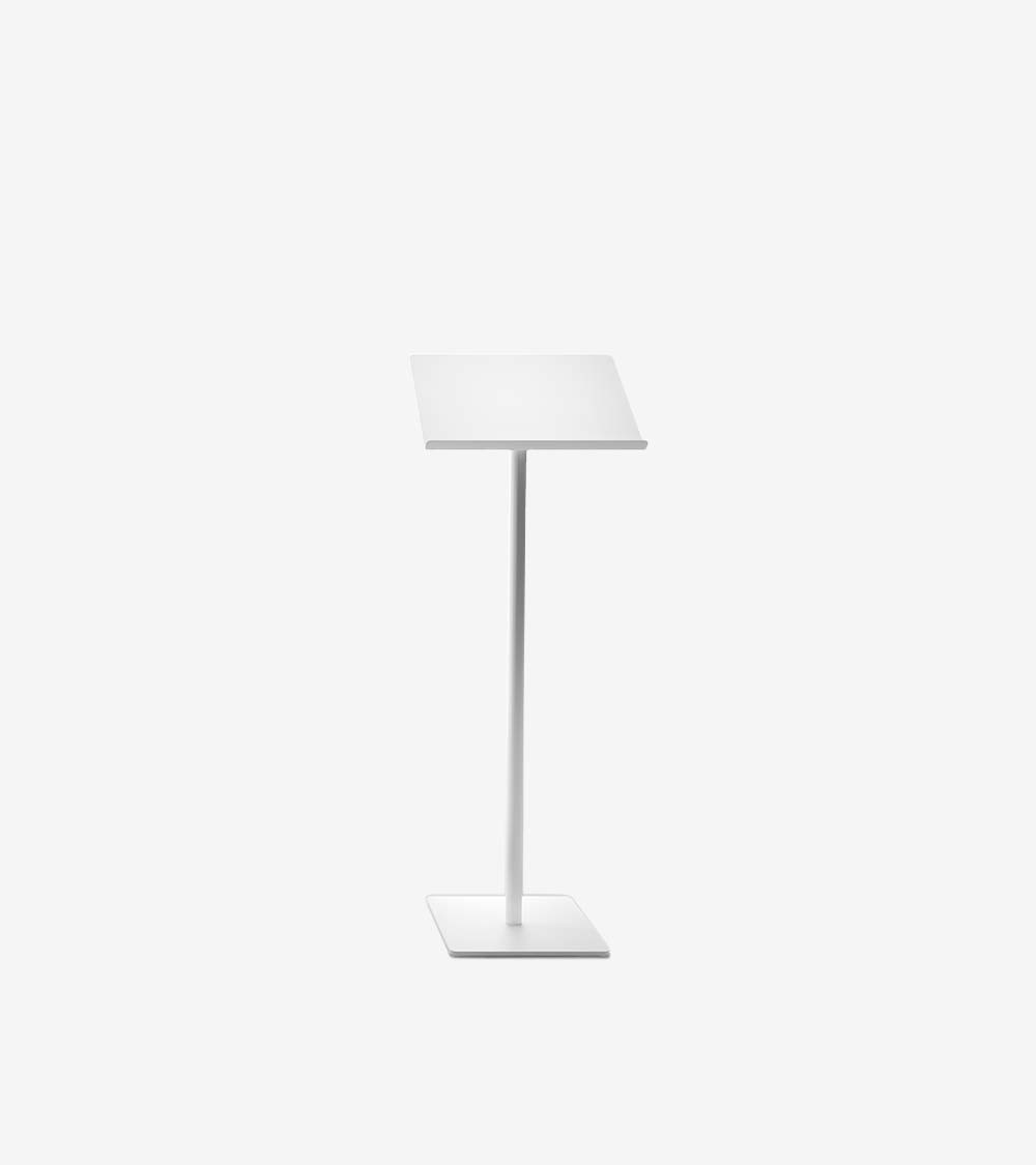 The Atria Lectern by Systemtronic offers an elegant and practical solution for supporting documents, books, tablets, or presentations in any space. Its design combines a stable base with an inclined platform that facilitates reading and displaying content. Made of lacquered steel, it is available in several colors, allowing for configurations that adapt to different interior styles.