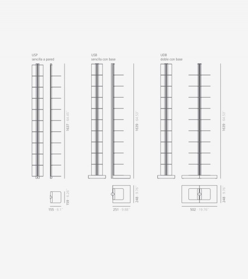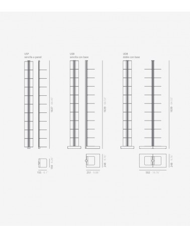 La estantería Usio de Systemtronic está diseñado para oficinas, hoteles o salones. Fabricada con columna en aluminio, anodizado plata mate y estantes de acero pintados. Estantería de líneas sencillas y ligeras. Disponible en tres versiones, de pie, de pie doble y de pared. Fabricado por la marca Valenciana