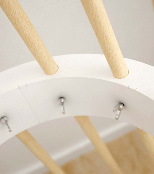 • Material: Aro fabricado con plancha de acero 5mm y 12 barras de madera de haya.