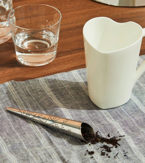 El Foltro de té You de Alessi, es una pieza que destaca tanto por su funcionalidad como por su estética encantadora. La forma cónica y alargada del filtro You tiene un diseño práctico que facilita tanto el llenado como el vaciado del contenido, haciendo que su uso sea simple y cómodo. Además, su estructura lo hace especialmente versátil, ya que es adecuado para ser usado con cualquier taza, lo que lo convierte en un accesorio ideal para quienes disfrutan de una buena taza de té en cualquier momento del día.