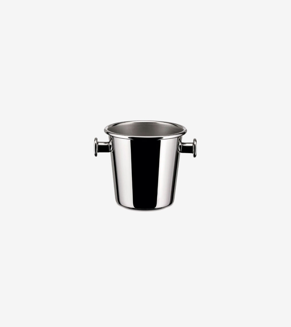 La Cubitera 5051 de Alessi, diseñada por Ettore Sottsass, combina funcionalidad y diseño vanguardista con su forma geométrica en acero inoxidable, ideal para cualquier ambiente.