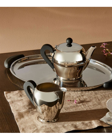 La Lechera Bombé de Alessi, diseñada por Carlo Alessi, es una pieza que fusiona la funcionalidad con un diseño moderno y elegante. Fabricada en acero inoxidable, este objeto destaca por su silueta redondeada y su acabado pulido, lo que le otorga una apariencia sofisticada. Su capacidad es perfecta para servir leche, cremas o salsas, y su diseño ergonómico incluye un mango cómodo y un pico preciso que permite un vertido controlado, sin goteos. La lechera Bombé no solo cumple con su propósito práctico, sino que también aporta un toque de estilo y modernidad a cualquier mesa, ya sea en un ambiente casual o formal. Su durabilidad y fácil mantenimiento hacen de esta lechera una pieza que perdurará en el tiempo, manteniendo siempre su aspecto impecable gracias al acero inoxidable de alta calidad.
