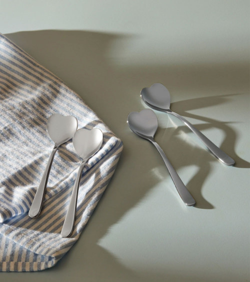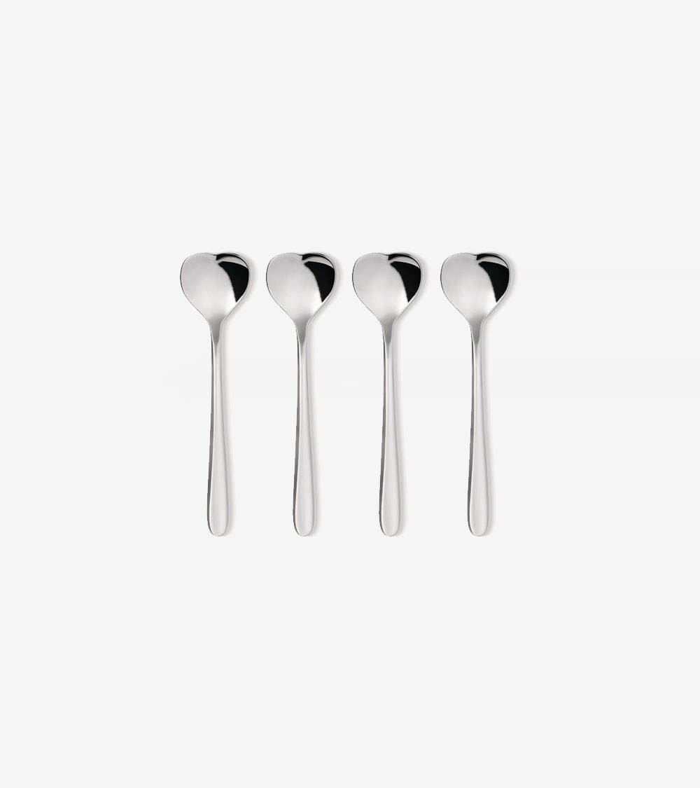 El Set de 4 Cucharas Big Love de Alessi diseñadas por Miriam Mirri combina diseño y funcionalidad. Con su forma de corazón, son perfectas para postres y ocasiones especiales, ofreciendo elegancia y calidad en cada uso.