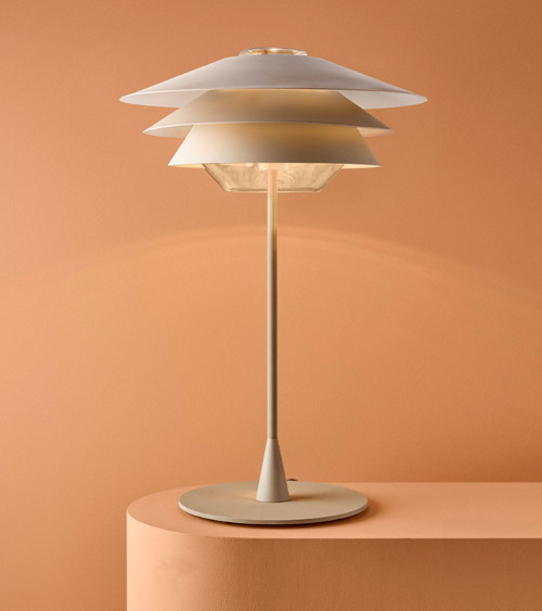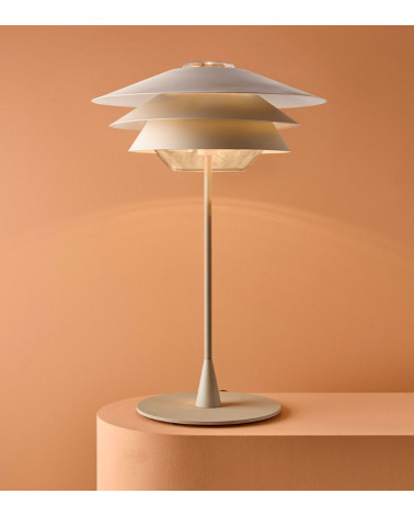 La Luminaria Overlay T de Blux es una lámpara de mesa de vidrio soplado con tres reflectores cónicos desmontables, permitiendo ajustar el efecto de luz. Disponible en acabados de vidrio coñac o gris, con reflectores en varios colores mate. Equipado con un LED de 4W (G9) y cable textil gris, es ideal para ambientes modernos y acogedores.