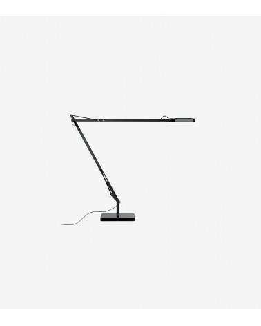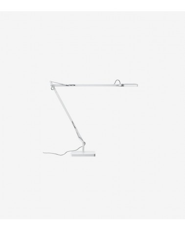 Lámpara de sobremesa para iluminación directa, con doble brazo y cabeza orientable. Cuerpo realizado en aleación de aluminio fundido. Parte exterior de la cabeza realizada en inyección de aluminio con difusor en metacrilato estampado. Los tirantes exteriores son en cable de acero de 3 mm de diámetro. Disponible en acabados blanco, antracita, negro o cromado. El interruptor ON/OFF es electrónico y está equipado de un mecanismo óptico situado en la cabeza. Dos opciones posible: - CONFIGURACIÓN PERSONAL (interruptor naranja que regula la intensidad de la luz como prefieras) - GREEN MODE (interruptor verde, ahorrando cada vez más energía gracias a su posibilidad de compensación automática de la luz ambiental)