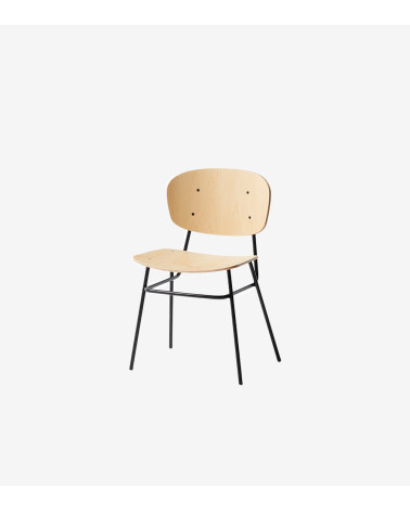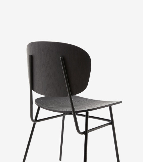 • Material: Asiento: Madera recubierta de goma espuma ignífuga/ Respaldo: Tablero curvado de madera de haya recubierto de goma espuma de poliuretano/ Patas: Madera maciza de fresno en acabado natural, negro o bosco.