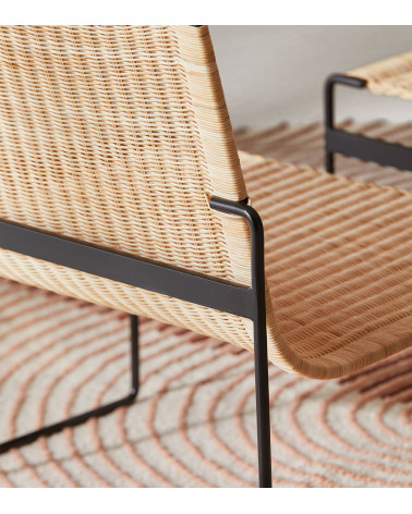 - Material: Asiento trenzado de médula de ratán natural y estructura de metal F1 lacado en negro y blanco.